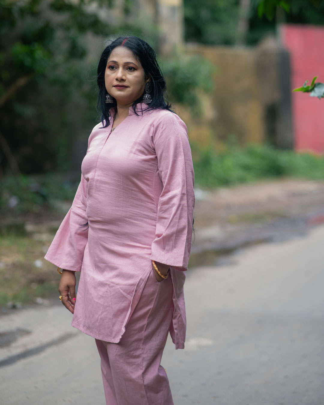 Elevate your everyday style with this V-Neck Pink Co-ord Set, made of pure cotton designed to blend modern minimalism with effortless comfort. The soft, pastel pink tone brings a touch of freshness and charm, while the classic V-neckline enhances the overall silhouette with subtle sophistication. Crafted from lightweight, breathable fabric, this co-ord set ensures you stay stylish and comfortable — whether you’re at brunch, a casual meeting, or a day out with friends.